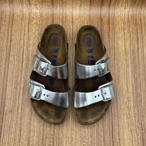 Birkenstock Arizona Soft Footbed Womens Sandals EU 36 US 5 Metallic Silver
