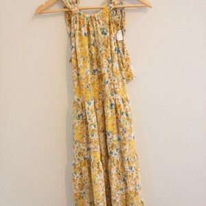 Stylish dress with a floral design. Features yellow and green hues. Great for a fall wedding or a boho festival! Love the Hayden brand! Great quality and bought at a boutique. Adjustable straps and tie back. Size small. NWT