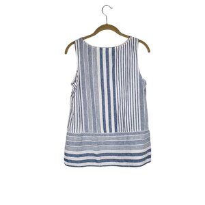 J Jill Love Linen Blue White Cabana Stripe Sleeveless Tank Top Womens Size Small