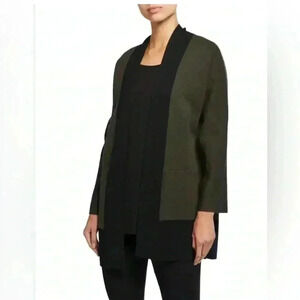 Eileen Fisher Merino Wool color block cardigan