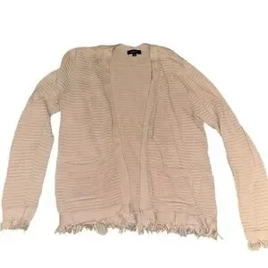 Chic plum/pink/purple cardigan with stylish fringe. Ideal for layering. This cardigan is extremely versatile. The color is beautiful, but it’s extremely hard to capture the correct color in daytime light outside light nightlight, but it is a perfect shade.