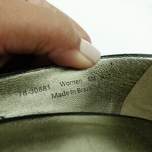 Step out in style with these stunning Johnston & Murphy black stiletto heel pumps! These size 8 pumps are in excellent condition and feature a sleek, pointed toe design. The black leather is complemented by a unique scaley texture, adding a touch of edge to any outfit.