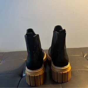 Black Leather Lug Ankle Boots with Tan Soles