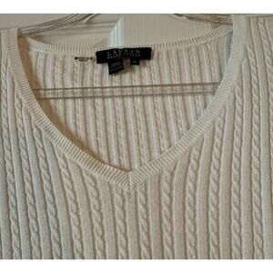 Lauren Ralph Lauren Women's Cable Knit V-Neck Sweater White Size XL