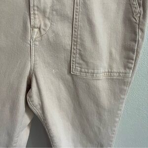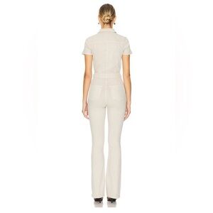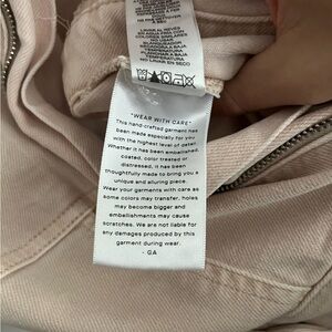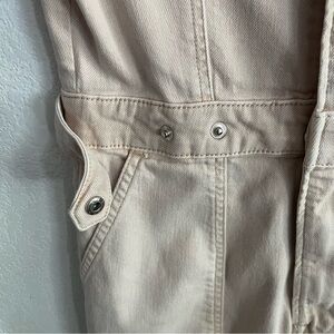 Excellent condition minus a couple little bleach flecks (pictured) but they’re not noticeable at all because of the color of the jumpsuit!