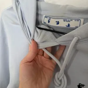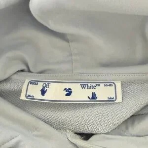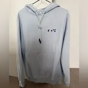 Elevate your casual look with this Off-White hoodie. Features a subtle logo detail. Very good condition but some discolouration on the front bottom and inside neckline.