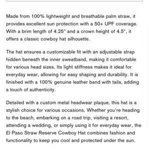 hantung Straw Western Hat by Brixton Hats! This hat provides UPF 50+ sun protection and an inner moisture-wicking sweatband to keep you cool and comfortable in the sun. A classic cowboy hat shape, both lightweight and breathable, is waiting for you!