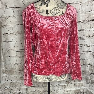 BARANDA Crushed Velvet Long Sleeve Top Sz L Pink
