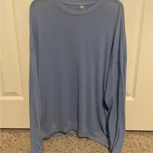 Stylish sky blue crew neck top. Features long sleeves and soft fabric. Ideal for casual outings. Retails $98. Size L Alo Soho