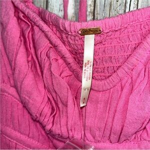 NWT Free People Chloe Pink Smocked Tie Back Blouse