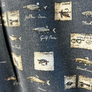 CLEARANCE Men’s Medium Woolrich Fishing Patterned Blue Button Down Shirt