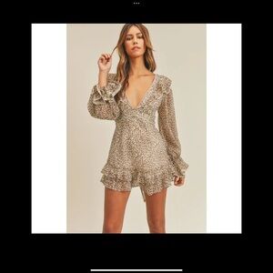 NWT leopard v-neck ruffle dress with detailed lace back
