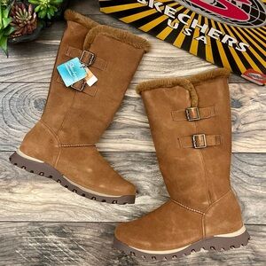 NIB Skechers Grand Jams Snowdrop Mid Calf Winter Boots Chestnut Suede