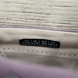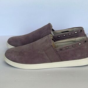 Spenco Women's Santa Barbara Rivet Slip-on Sneakers. The shoes are a lavender or elderberry suede color with a white sole and perforated detailing on the sides. Some sources also refer to them as "orthotic slip-on comfort sneakers. Please reference attached pictures for style, colors, condition and sizing. New without box.