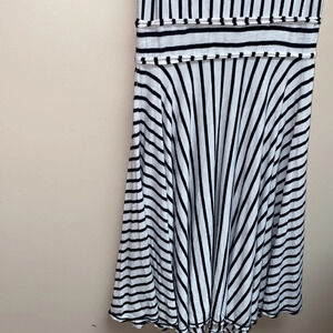 🤍♠️comfy summer chic style Max Studio strike white black midi sleeveless dress Sz m approx measurements preloved worn peeling faded wear condition photographed same day shipping from smoke free home
