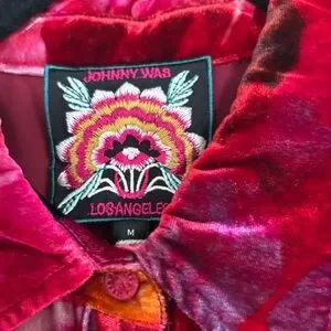NWT JOHNNY WAS Velvet Oversized Shirt in Ruby Bloom