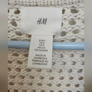 Y2k H&M Crochet knit 100% Algodon Cotton Ivory Oversized Collard boho sz S Sweater / Blouse
