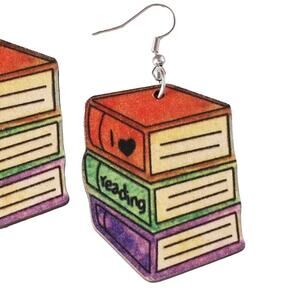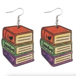 Book Earrings NEW Bookish Gift Book Lover Wooden I Love Reading