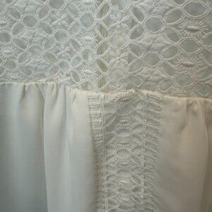 Elevate your everyday style with this VICI white lace blouse, a romantic and versatile piece that transitions seamlessly from work to weekend. The delicate crochet lace overlay on the bodice and sleeves adds texture and sophistication, while the soft, lined body ensures comfort and coverage.