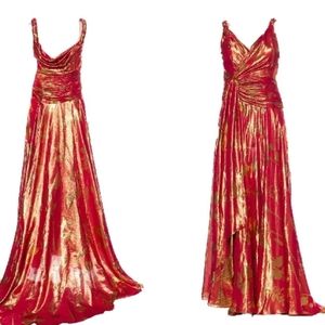 °$8,000 NWT OSCAR DE LA RENTA RED GOLD SILK RUNWAY GOWN US 0 XS