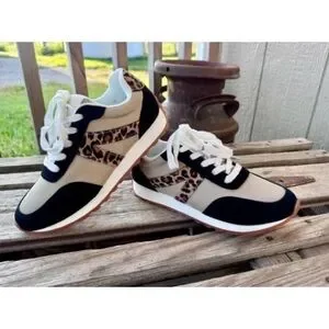 BRAND NEW WITH TAGS Very G Tan & Black Leopard Accent Sneakers