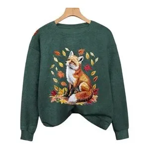 Cozy green sweater featuring a detailed fox and autumn leaves design. Perfect for fall fashion. Sweater Fox Graphic varios sizes available Elastane, Viscose