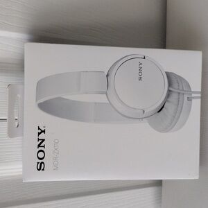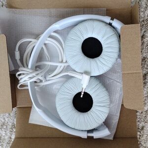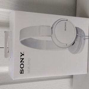 New, never used. Experience high-quality sound with Sony MDR-ZX110 headphones. Stylish and comfortable design. Lightweight and folds up for easy storage.