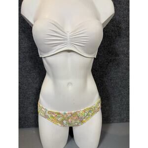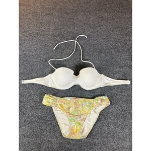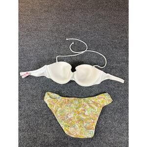 Victoria’s Secret Bikini Set – White Bandeau Halter Top & Paisley Bottom – M