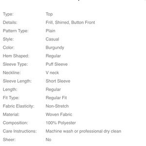 This elegant burgundy blouse features a flattering V-neck and stylish puff sleeves. Perfect for any occasion.