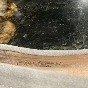 Worn once very gently. In excellent condition. Gorgeous suede in neutral gray/beige shade. Super easy to wear. Ready to pass them on to be worn and loved!