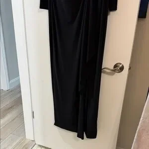 Lauren Ralph Lauren evening dress in black. Long sleeves with elegant brooch detail. Perfect for formal events.