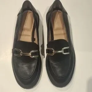 Rachel Zoe Black Faux Leather Lug Soled Loafers with Gold Accent Size 8