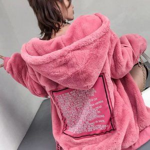 New Faux Fur Pink Teddy Velvet Plush Hoodie