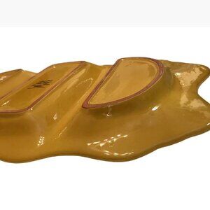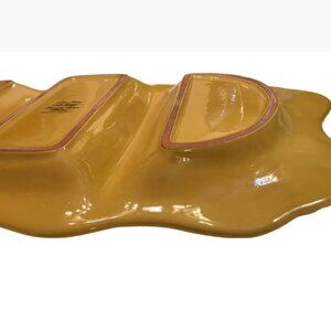 RARE FIND! This beautiful amber-colored, hand-painted platter originates in France. Partitioned sections allow foods of different flavors to coexist on the same platter.