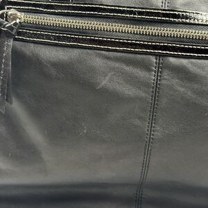 Black leather satchel/shoulder bag with detachable adjustable crossbody strap