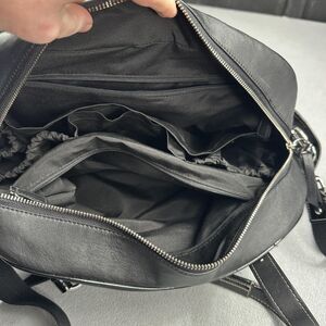 Very good pre-owned condition. Light wear with a small corner scuff; faint marks near back zip. Hardware and zippers function well. No changing pad.