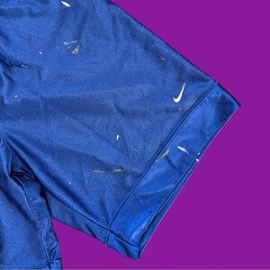 Royal blue Y2K-era Nike mesh shorts with embroidered swoosh
