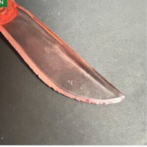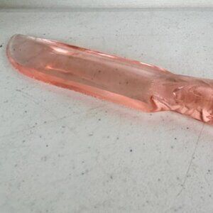 Depression glass was mass-produced from the 1920s through 1940s as affordable glassware during economically challenging times. Pink was one of the most popular colors produced and remains highly collectible today. Glass flatware and serving pieces like this cake knife were practical yet decorative additions to the home.