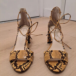 Jessica Simpson Yellow Black Nehah Snakeskin Ankle Tie Sandals Heels Size 6m