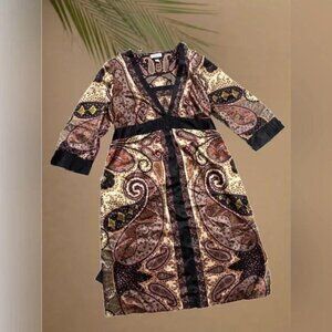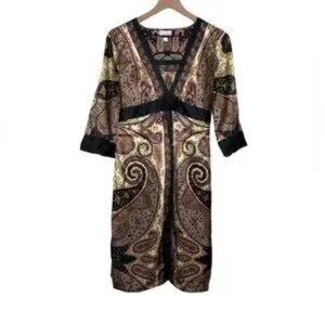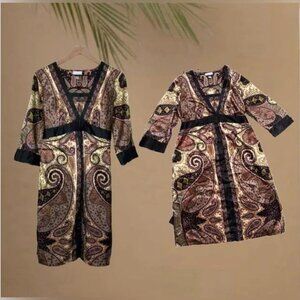 A Pea in the Pod YASB Maternity Dress Paisley Size M Women’s Bronze Black Kimono
