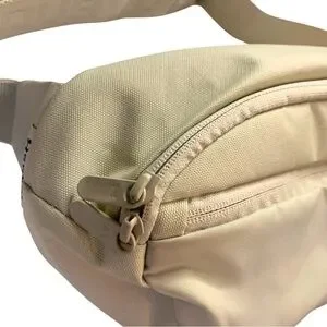Tags: beige waist bag, tan belt bag, Under Armor waist bag, beige sling bag, crossbody bag, athletic, sporty, Athleisure, active, gym, workout, cream waist bag, fanny pack, waist pack, sporty chic