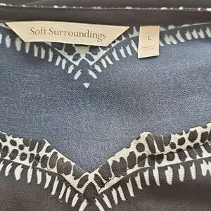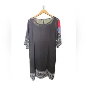 Soft Surroundings Sz Large Black Floral Hibiscus Shift Dress