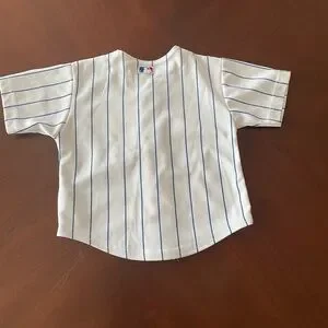 Majestic Cubs Kids White and Blue Pinstripe Jersey, Sz 18 Mos