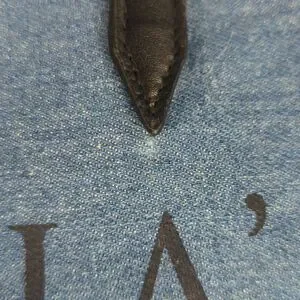 There are small light dots in the denim where the strap attachments rub it, and the straps have VERY slight wear in the center where they bend or lay on the shoulder. These are very minor "flaws" and they do not affect its appearance or use.