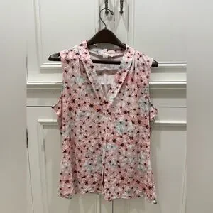Calvin Klein Floral Sleeveless Blouse Pink Blue Size Large