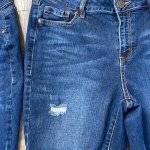 Two pairs of excellent condition jeans! No stains or signs of wear and no puckering stretch areas. Flex magic waistband and raw hem ankles with distressing on legs. These are the same jeans in style and size
