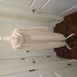 Elegant cream long cardigan featuring front pockets and hood. Perfect for layering. Knee length. Size XL. 60% cotton, 40% polyester. UV Resistant (UPF 40+). NWT.