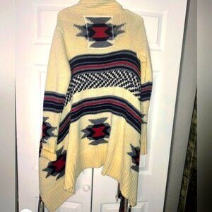 nwot shawl oversized (NWot)** **oversized** **ladies' sweater** from the **Japanese luxury brand Superdry**. It is a **rare** item, sized **large**, and features a **snake-style tassel** design.