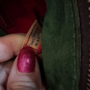 Zipper closure tassels green suede collar adjustable crossbody strap registration card