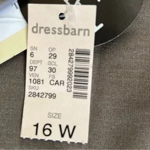 measures approximately 16 inches across waistline laying flat; 13 1/2 inch rise, 29 inch inseam; Size 16S, NWT!
